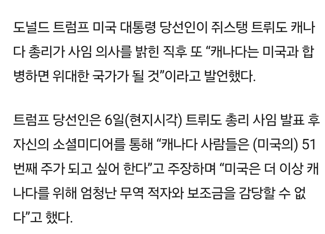 [흥미돋]트럼프 : 캐나다는 미국의 51번째 주 작성자xbxnk|작성시간25.01.08|조회수2,422 목록 댓글 11 글자크기 작게가 글자크기 크게가 출처: 여성시대 xbxnk진심으로 조롱 + 주장중임 다음검색 현재 게시글 추가 기능 열기 북마크 공유하기 신고 센터로 신고 댓글 댓글 11 댓글쓰기 답글쓰기 댓글 리스트 작성자기름진회를좋아합니다 | 작성시간 25.01.08 ㅋㅋㅋㅋㅋㅋㅋㅋㅋㅋㅋㅋㅋㅋㅋㅋㅋㅋㅋㅋㅋㅋㅋㅋㅋ 작성자로또1등세후30억 | 작성시간 25.01.08 하나의 미국 이런거냐 작성자민주시민세상 | 작성시간 25.01.08 또라이야 진심.. 작성자oOoOOOoo | 작성시간 25.01.08 아직 취임도 안했는데 벌써부터 난리네 작성자헤어나와야 | 작성시간 25.01.08 진짜 캐나다 사람들 미국 존나극혐하던데 댓글 전체보기
