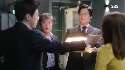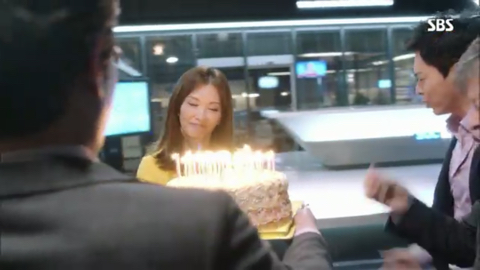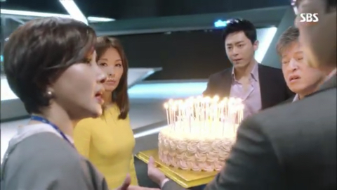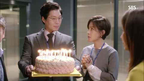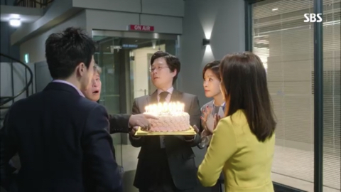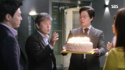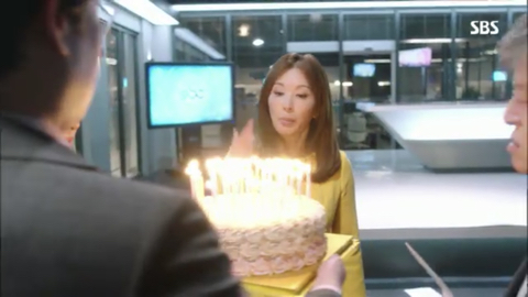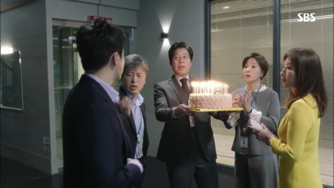 오국장: 표정 봐라 이거, 표정 봐. 이거 봐 나이 들면 감동이 없다니까. 됐고, 방국장 이거 당신이 시킨대로 계기자가 좋아하는 케이크 맞아? 그것만 확인해