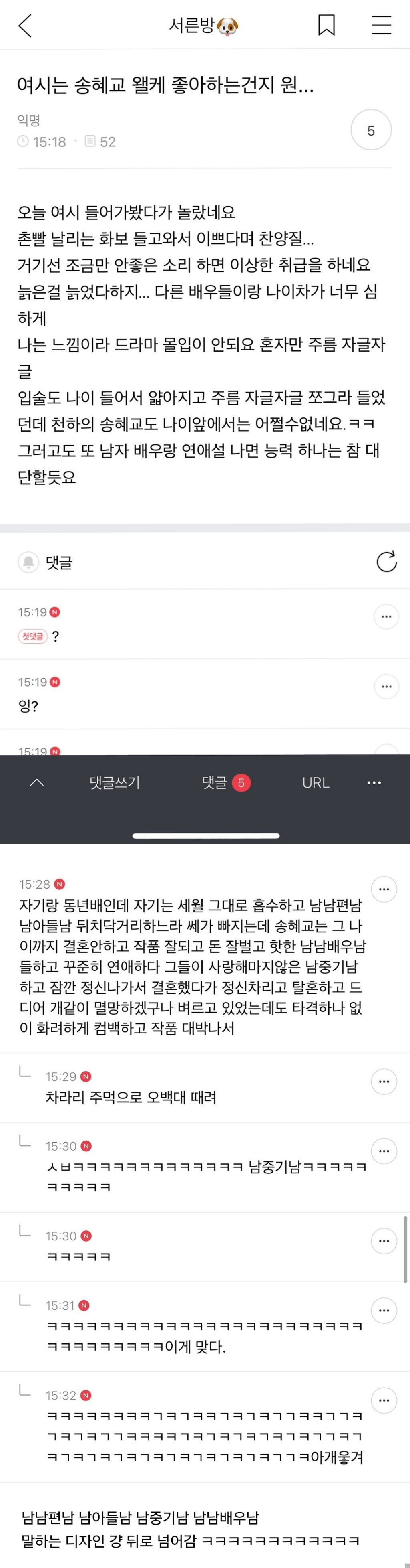 [스크랩] [흥미돋]여시는 송혜교 왤케 좋아하는건지 원... 작성자(본인닉네임.|작성시간25.01.09|조회수22,009 목록 댓글 135 글자크기 작게가 글자크기 크게가 출처: 여성시대 또 물보라를 일으켜카페 착각한 소쌍으로 추정ㅋ원글 삭제돼서 재업 다음검색 스크랩 원문 : *여성시대* 차분한 20대들의 알흠다운 공간 현재 게시글 추가 기능 열기 북마크 공유하기 신고 센터로 신고 댓글 댓글 135 댓글쓰기 답글쓰기 댓글 리스트 작성자쿠키도우 | 작성시간 25.01.09 촌빨이란말 진짜 몇년만에첨들어봐 십년도넘은듯 찐은못이기네; 작성자글래스빔스 | 작성시간 25.01.09 말투 개소름ㅋㅋㅋ 작성자오쪼쪼키이 | 작성시간 25.01.10 말투 지문수준ㅋㅋㅋㅋㅋㅋ 작성자짱밍이 | 작성시간 25.01.10 말투 진짜 으 작성자데참사 | 작성시간 25.01.10 와 본문 개촌스러웤ㅋㅋㅋㅋ 댓글 전체보기
