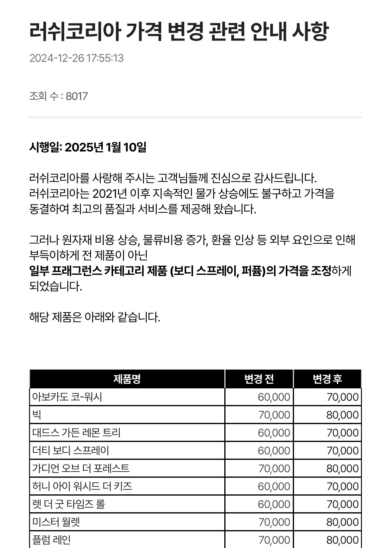 [흥미돋]1/10 부터 변경되는 가격 러쉬 일부 제품 작성자나프탈렌향|작성시간25.01.09|조회수4,609 목록 댓글 22 글자크기 작게가 글자크기 크게가 출처: 여성시대 나프탈렌향 다음검색 현재 게시글 추가 기능 열기 북마크 공유하기 신고 센터로 신고 댓글 댓글 22 댓글쓰기 답글쓰기 댓글 리스트 작성자랴!!!!!!!!!!! | 작성시간 25.01.09 우리나라 저렴하지도 않던데.. 흠ㅎ 작성자앤톤찬영리 | 작성시간 25.01.09 헐 개많이 올리네 안사야지 작성자느개비편의점에서노숙 | 작성시간 25.01.09 오 미친 왜 사 존나 비씸 작성자파란옷이젤다 | 작성시간 25.01.09 도랏나 작성자신비아파트고스트볼 | 작성시간 25.01.09 러쉬 직구도 비싼가 흠 댓글 전체보기
