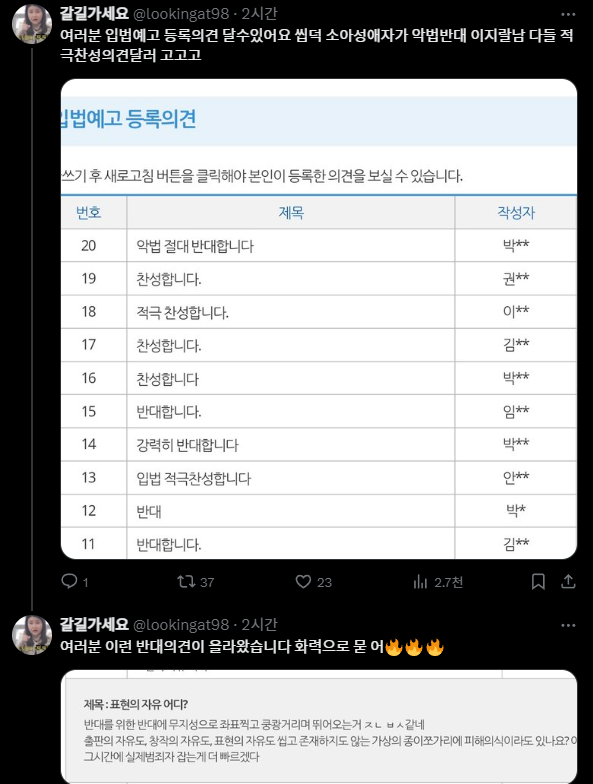 근데 지금 찬성 의견 남기려고 들어가 봤더니????