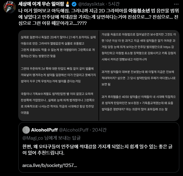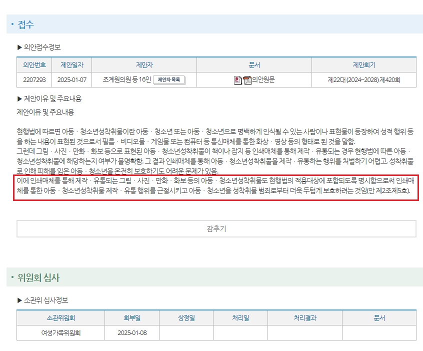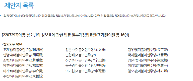 최근 더불어민주당 의원들이 아청법 일부 개정안을 올렸고