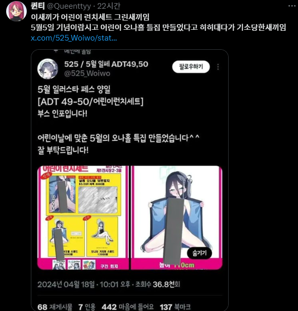 어린이날에 맞춰 "런치 어린이 세트" 라며 여아 성기 그린 상품을 파는 놈들이 있기 때문이야😡🤬