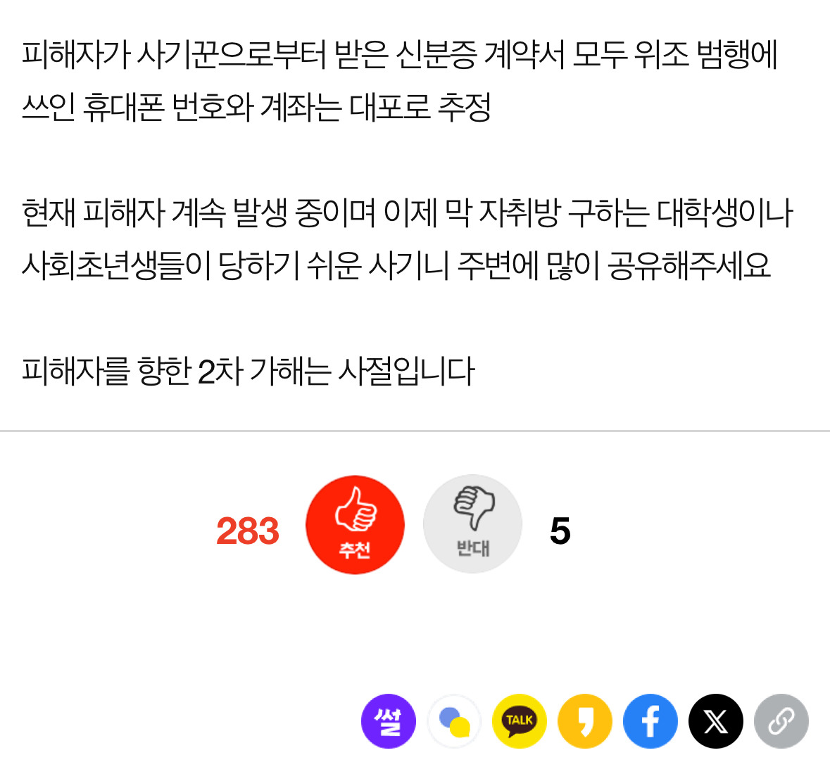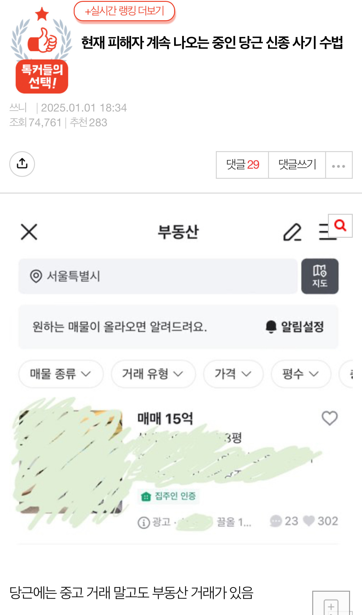 [스크랩] [기타]현재 피해자 계속 나오는 중인 당근 신종 사기 수법 작성자울세탁필요|작성시간25.01.09|조회수34,054 목록 댓글 6 글자크기 작게가 글자크기 크게가 출처: https://pann.nate.com/talk/373739070 다음검색 스크랩 원문 : *여성시대* 차분한 20대들의 알흠다운 공간 현재 게시글 추가 기능 열기 북마크 공유하기 신고 센터로 신고 댓글 댓글 6 댓글쓰기 답글쓰기 댓글 리스트 작성자만득이곱창 | 작성시간 25.01.09 와 잘 알아놔야지.. 작성자불규칙한 생활을 규칙적으로 합니다 | 작성시간 25.01.10 헐 조심해야겠다 작성자에피타이저 | 작성시간 25.01.10 진짜 사기가 다양해진다.. 작성자비비드유니콘 | 작성시간 25.01.19 인증서류를..어케보내줌..? 작성자반박시 님말이 다 맞음 | 작성시간 25.01.19 부동산 사기는 진짜 사형해야해.. ㅠㅠ 남의 전재산을 ㅜㅜㅜㅜㅜㅜ 진짜 젤 나쁜놈들이야 ㅜㅜㅜㅜㅜㅜㅜㅜㅜㅜ 댓글 전체보기