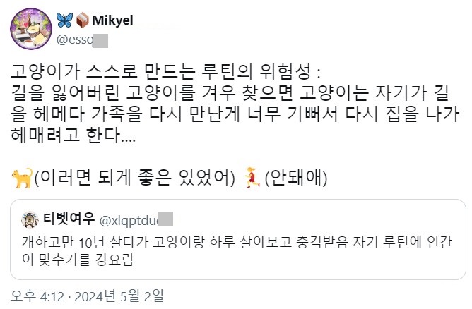 작성자겨울이조아요요요요 작성시간 25.01.11 전남친이랑 같이데랴와서 키운거구만;그리고 뭔 댓쓴사람들이 키우래 ㅋㅋㅋㅋ 존나 이거 한남들 마인드자나…;