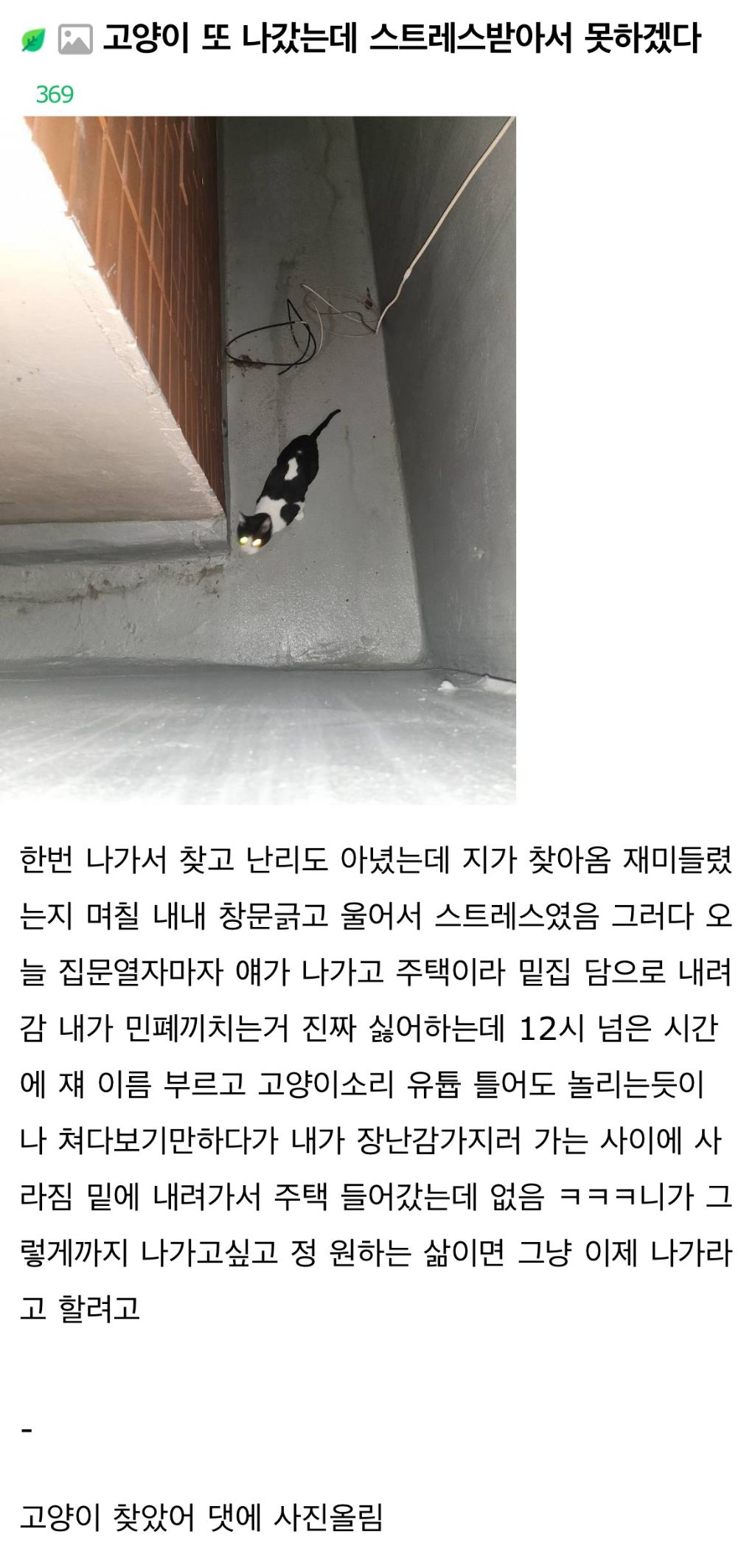 너무 날쌔서 가끔 집밖으로 튀어나가.