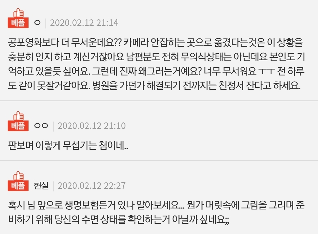 5. 댓글에선 "카메라 설치한 이후로 어떻게 그걸 알고 사각지대에서 쳐다보겠냐"며, 남편이 먼저 카메라를 설치 한 거 아니냐 고 함
