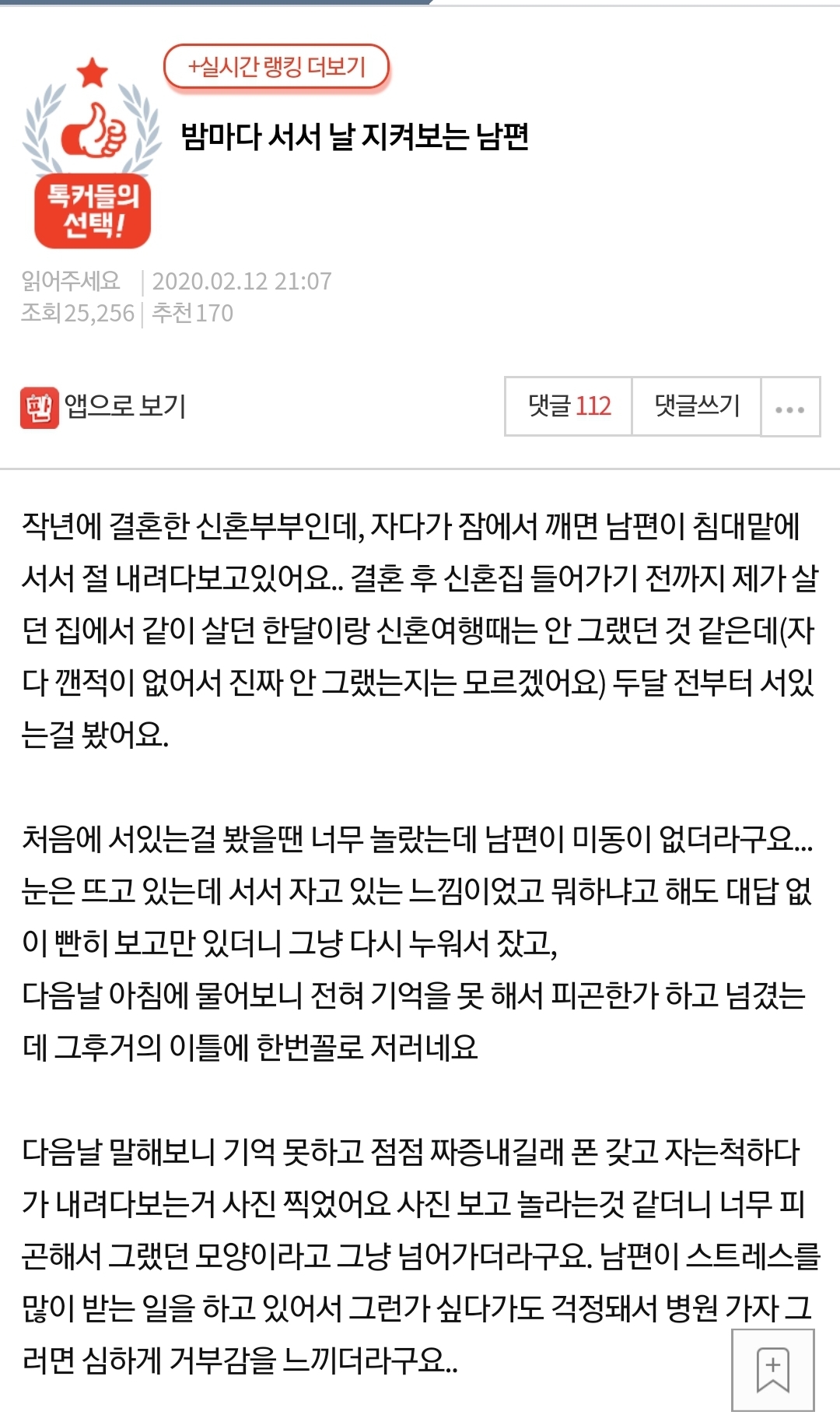 1. 신혼부부인데 자다깨서 보면 남편이 선 채로 본인을 쳐다보고 있음