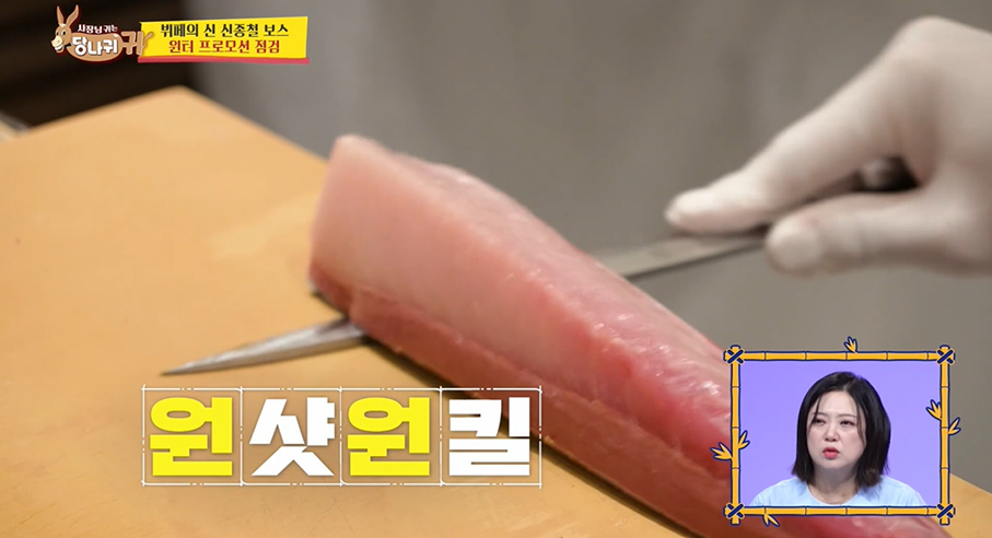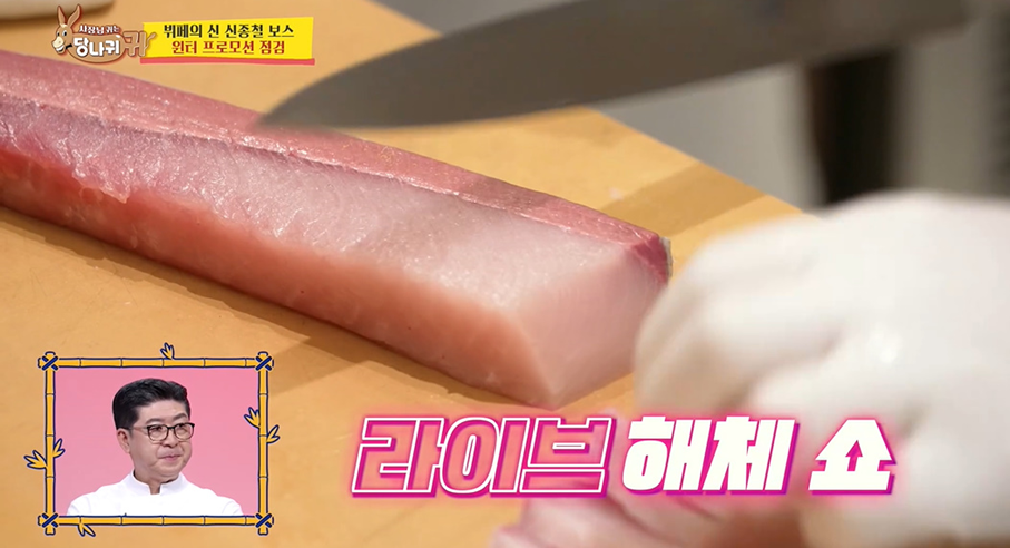 해체 하다 중간중간 어느 부위입니다 정도만 말하고 다 손질 후 제일 기름이 많은 부위는 여기고 담백한 부위는 이곳입니다. 궁금하신것 편히 질문해주세요! 하고 끝내면 좋겟음