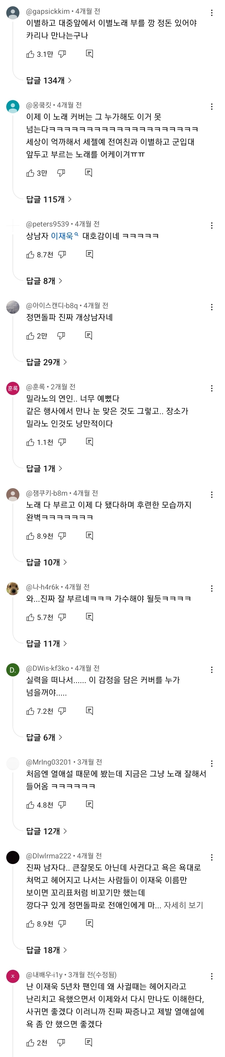 [스크랩] [기타]배우 이재욱 레전드 작성자보셩|작성시간25.01.13|조회수54,871 목록 댓글 188 글자크기 작게가 글자크기 크게가 https://youtu.be/OLPj51BJJsE?si=-a-jVlJUF9tq3Ufe서사가 담긴 선곡 다음검색 스크랩 원문 : 樂soccer 현재 게시글 추가 기능 열기 북마크 공유하기 신고 센터로 신고 댓글 댓글 188 댓글쓰기 답글쓰기 댓글 리스트 작성자웨지자감 | 작성시간 25.01.13 2달 만난걸로 이러는게 ㄹㅈㄷ 작성자츄라히 | 작성시간 25.01.13 ㅋㅋㅋㅋ개짜증나 진짜 ㅎ 작성자츄라히 | 작성시간 25.01.13 진짜 개나대 작성자오래오래또래 | 작성시간 25.01.13 아나 이래서 이별하고 한 반년동안은 지인들하고 노래방안가 ㄹㅇ 노래가사에 온갖추측다함 작성자Loreils | 작성시간 25.01.14 ㅋㅋ아니 얼마 안만났잖어 댓글 전체보기