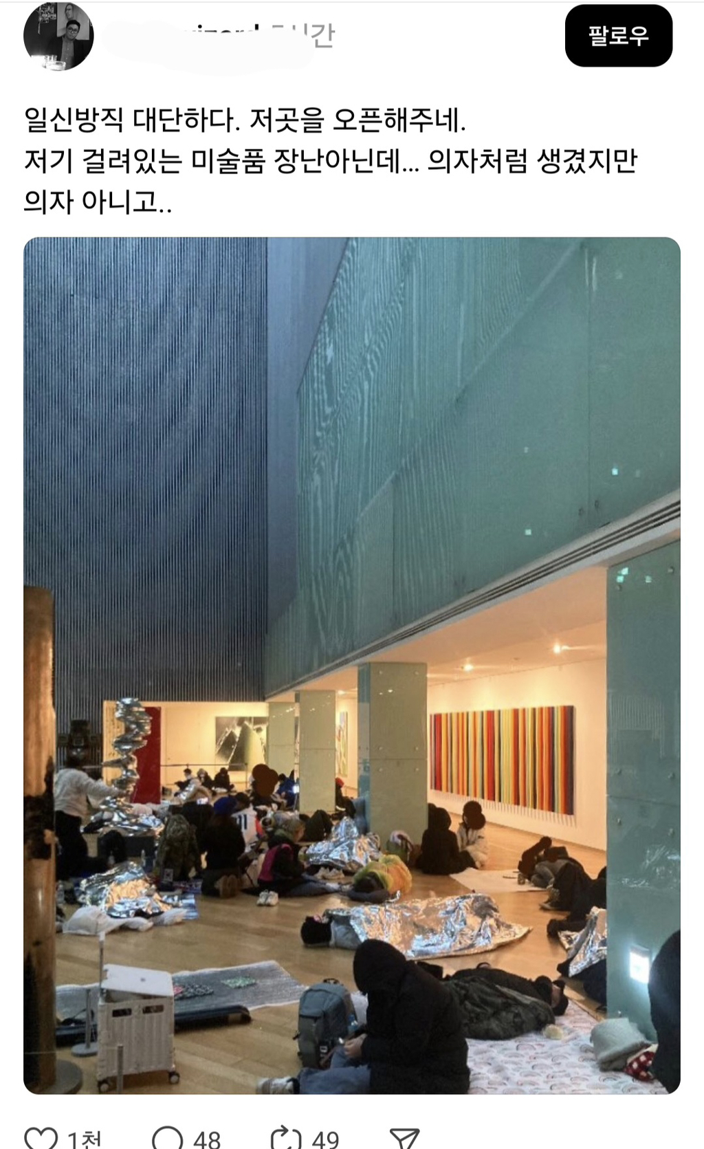 [스크랩] [흥미돋]시위대에 사옥 개방한 일신방직 작성자The young king|작성시간25.01.13|조회수5,492 목록 댓글 22 글자크기 작게가 글자크기 크게가 출처:https://www.dmitory.com/348241199 다음검색 스크랩 원문 : *여성시대* 차분한 20대들의 알흠다운 공간 현재 게시글 추가 기능 열기 북마크 공유하기 신고 센터로 신고 댓글 댓글 22 댓글쓰기 답글쓰기 댓글 리스트 작성자데갈이애쏘주꼿안니 | 작성시간 25.01.13 고디바 시발 작성자이재명 최종학력 청와대 | 작성시간 25.01.13 화장실 잘 쓰고 몸 녹였습니다...감사합니다ㅠ 작성자예쁜거보자 | 작성시간 25.01.14 지오다노 오케이 작성자하얀달부터파란눈까지 | 작성시간 25.01.14 고디바 신동와인 ㅇㅋㅇㅋ 꼭 먹는다 작성자아빠가88년생이라연세가많으신데 | 작성시간 25.01.14 앞으로 선물 할 때는 고디바 댓글 전체보기