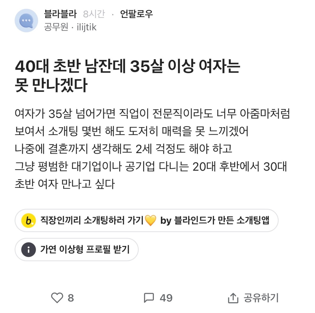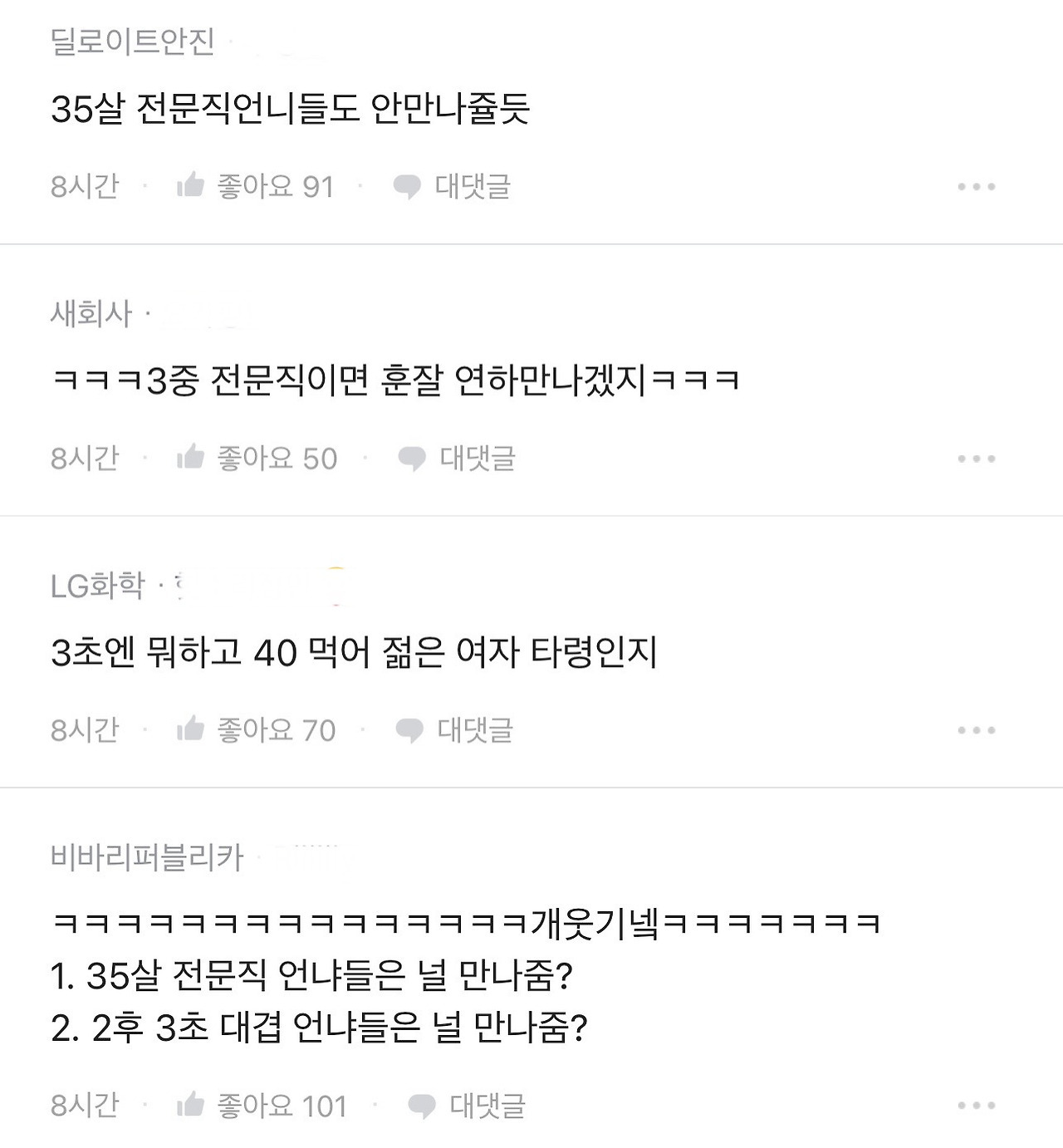 [스크랩] [흥미돋]블라) 40대 초반 남잔데 35살 이상 여자는 못 만나겠다 작성자Tory-|작성시간25.01.13|조회수11,693 목록 댓글 67 글자크기 작게가 글자크기 크게가 출처: https://theqoo.net/square/3563438649더쿠 - 블라) 40대 초반 남잔데 35살 이상 여자는 못 만나겠다theqoo.net 다음검색 스크랩 원문 : *여성시대* 차분한 20대들의 알흠다운 공간 현재 게시글 추가 기능 열기 북마크 공유하기 신고 센터로 신고 댓글 댓글 67 댓글쓰기 답글쓰기 댓글 리스트 작성자독일돌고래 | 작성시간 25.01.13 미쳣나봐 댓글단 거 작성자쟝포니 | 작성시간 25.01.13 그러세용 작성자호롤롤로푸푸 | 작성시간 25.01.13 언제는 24살이라며?? 무슨 35살로 언제뜀?? ㅋㅋㅋ 내년엔 45이것다 한남새키들 결헌못할까봐 부랄떨리는소리 여기까지난다 작성자facade | 작성시간 25.01.14 니면상 작성자자색고구머 | 작성시간 25.01.14 대기업 여성이 너따위를 왜 만나 ㅋㅋㅋㅋㅋㅋㅋㅋㅋㅋㅋㅋㅋㅋㅋㅋㅋㅋㅋ 대가리가 썩어 문드러져서 생각을 못하나봐 댓글 전체보기