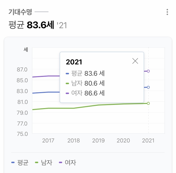 지금 한국 평균수명은 이렇다고 함