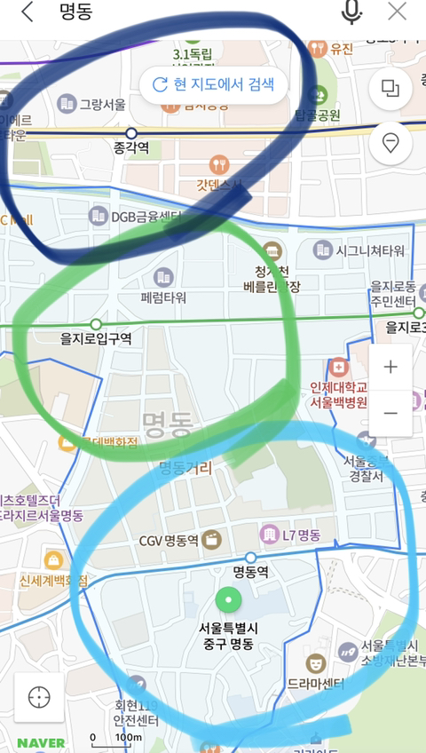 시청,광화문,인사동,종로2가 다 걸어갈 수 있는 정도의 이 근방
