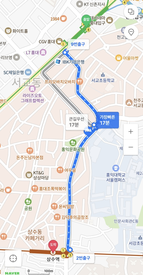 홍대놀이터나 쇼핑거리에서 상수역 6분이면 감