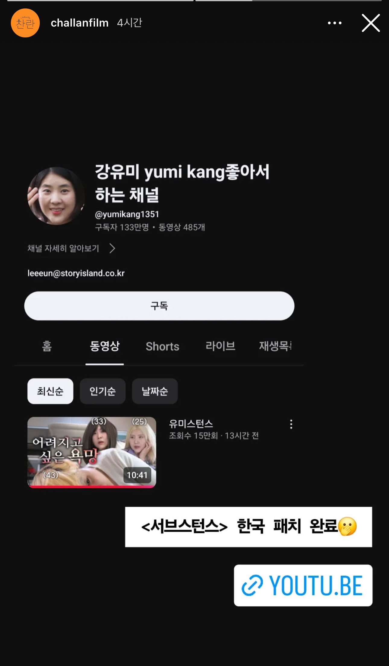 [흥미돋]서브스턴스 한국 수입사도 인정한 강유미가 올린 패러디 유미스턴스 작성자나프탈렌향|작성시간25.01.14|조회수15,532 목록 댓글 27 글자크기 작게가 글자크기 크게가 출처: https://youtu.be/lFEkTC08tB4?si=buclMSOlp05yloOX서브스턴스 영화 안봤어도 이해가능한 유미스턴스 다음검색 현재 게시글 추가 기능 열기 북마크 공유하기 신고 센터로 신고 댓글 댓글 27 댓글쓰기 답글쓰기 댓글 리스트 작성자하니러뷰 | 작성시간 25.01.14 고기서 고기다 ㅋㅋㅋㅋㅋㅋㅋㅋㅋㅋㅋㅋㅋㅋㅋㅋㅋㅋㅋㅋㅋㅋ 작성자복세편실 | 작성시간 25.01.14 진짜 너무너무 잘만들엇음ㅋㅋㅋㅋㅋㅋ 작성자뮤지컬 | 작성시간 25.01.14 아 진심 잘 만듦ㅋㅋㅋㅋㅋ 작성자고양이고양이고양이 | 작성시간 25.01.14 잘 만들었다 ㅋㅋㅋㅋㅋㅋㅋㅋㅋㅋㅋㅋ 작성자하바바하바바요 | 작성시간 25.01.14 진짜 천재다 댓글 전체보기