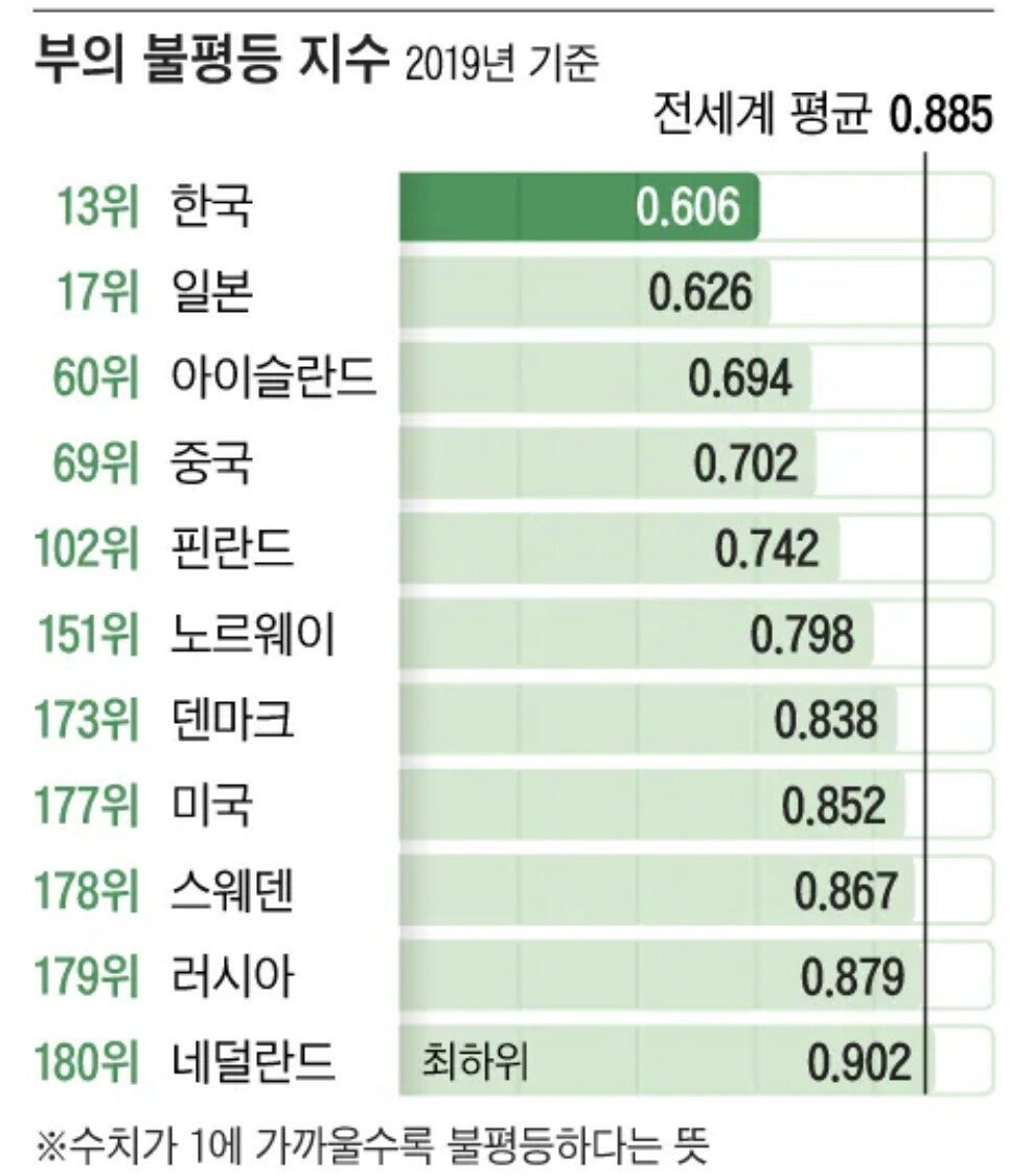 [ 부의 불평등 지수에서 오히려 유럽 국가들은 최하위권 ]