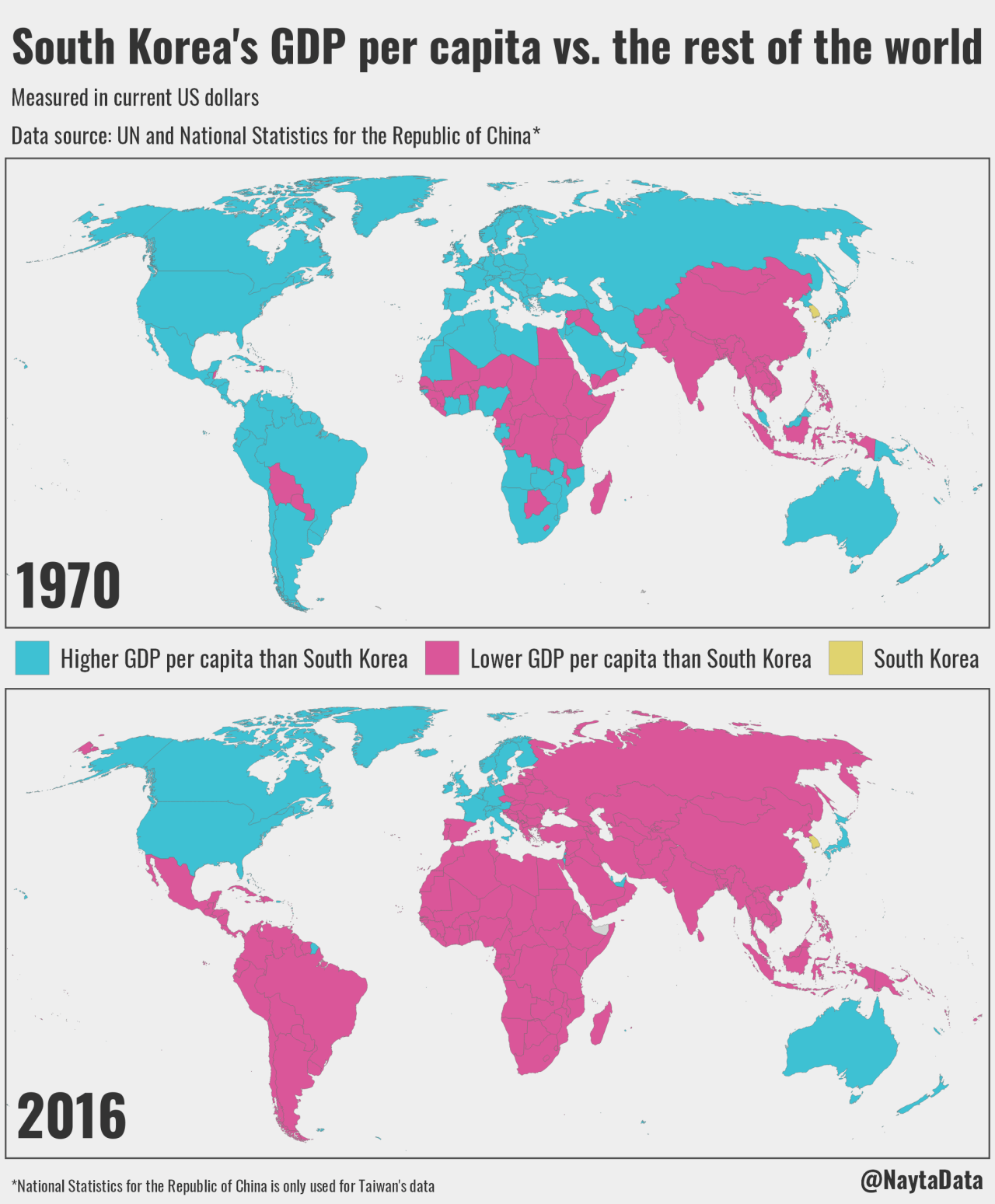 [ 아프리카보다 못살던 나라에서 북미-서북유럽에 준할정도로 올라옴 ]