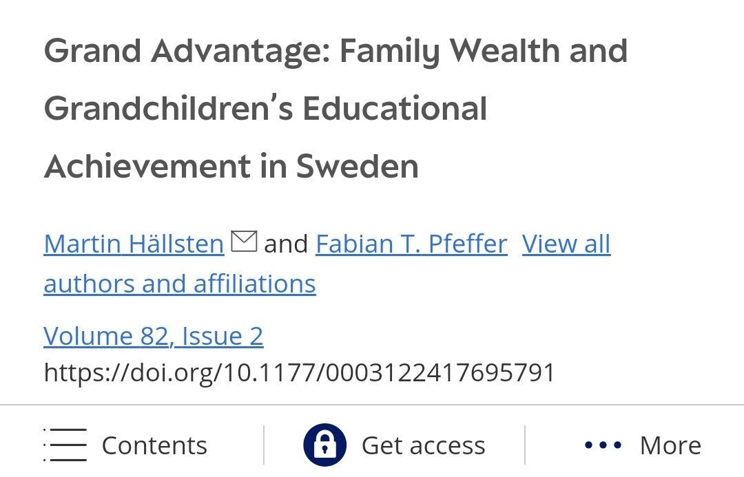 [ 스웨덴같은 국가에서도 아동의 교육적 성취가 부모를 넘어 심지어 조부모 자산 여부에 따라 큰 영향을 받는다는 연구 ]