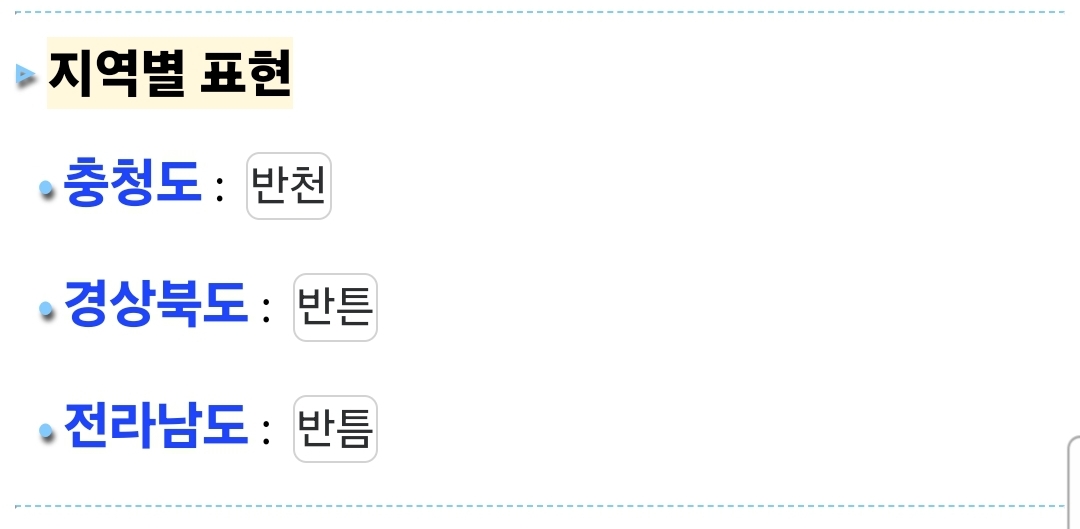 *여성시대* 차분한 20대들의 알흠다운 공간 [흥미돋]"나 밥 반틈만 줘" 작성시간25.01.15|조회수57,350 목록 댓글 201 글자크기 작게가 글자크기 크게가 출처: 여성시대 Ihicoi[반절]의 사투리반틈 반튼 반침 반천저는 경상도 출신인데 반천만 달라고 한다죠댓검 하면 4500건이나 나온다죠ㄷㄷ 다음검색 현재 게시글 추가 기능 열기 북마크 공유하기 신고 센터로 신고 댓글 201 댓글 리스트 작성시간 25.01.16 경남 반틈 반절 씀 작성시간 25.01.16 대전인데 반만 달라함 작성시간 25.01.16 반침 반틈ㅋㅋㅋㅋ 맞아.. 작성시간 25.01.16 경기인데도 종종 쓰긴 했는데 이거 사투리였구나 작성시간 25.01.16 대학 동기가 써서 알아 ㅋㅋㅋㅋ 나 그거 신기했어 시우시작 카페 방문해 더 많은 댓글 만나기!