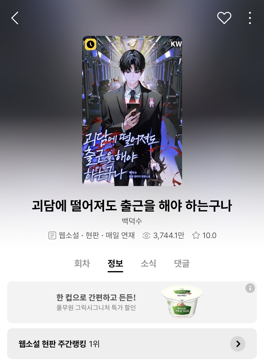 카카페 웹소설 <괴담에 떨어져도 출근을 해야하는구나>