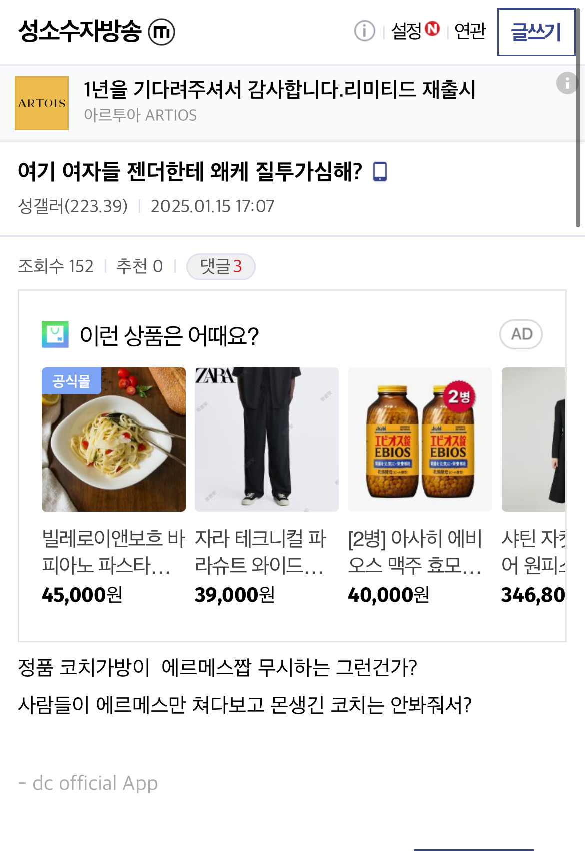 [흥미돋]젠더한테 왜케질투가심해? 작성자애플와플샌드|작성시간25.01.15|조회수9,002 목록 댓글 61 글자크기 작게가 글자크기 크게가 출처: 여성시대 애플와플샌드https://m.dcinside.com/board/lgbtqtv/26030여기 여자들 젠더한테 왜케 질투가심해? - 성소수자방송 마이너 갤러리정품 코치가방이 에르메스짭 무시하는 그런건가? 사람들이 에르메스만 쳐다보고 몬생긴 코치는 안봐줘서? - dc official Appgall.dcinside.com짭인걸 알긴 아는구나 다음검색 현재 게시글 추가 기능 열기 북마크 공유하기 신고 센터로 신고 댓글 댓글 61 댓글쓰기 답글쓰기 댓글 리스트 작성자안도비 | 작성시간 25.01.16 짭은 그래봐야 짭 작성자에트와르 | 작성시간 25.01.16 짭 작성자쌍문동몽지 | 작성시간 25.01.16 짭여자가 뭔 에르메스에요..ㅋㅋㅋㅋ 진짜 어처구니; 한남 다 가져가라 제발 🥺 여자들 소원 🙏 작성자라면먹고싶어 | 작성시간 25.01.16 여자가 왜 질투를.......... 작성자아버지는섹시드라이버 | 작성시간 25.04.28 에르메스 짭ㅋㅌㅋㅋㅋㅋㅋㅋㅋ 느그는 이케아가방이여 댓글 전체보기