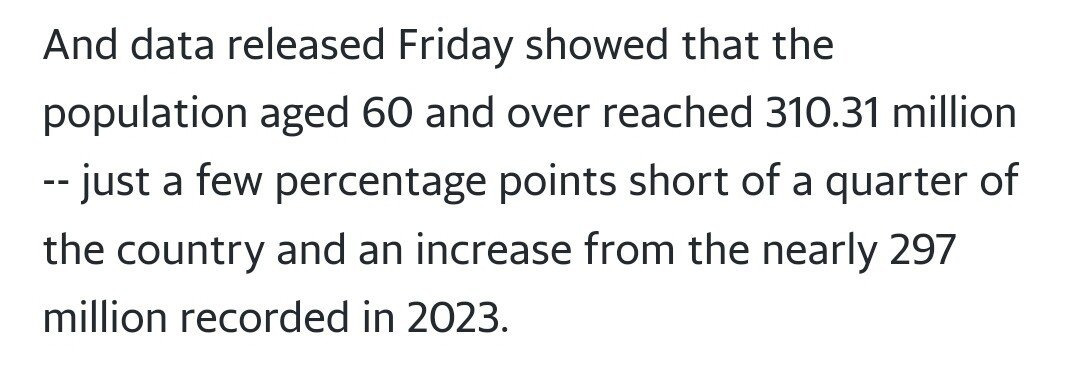 (요약ㅇ)중국 " 매년 죽는 노인 숫자가 신생아의 6배 될 것 "