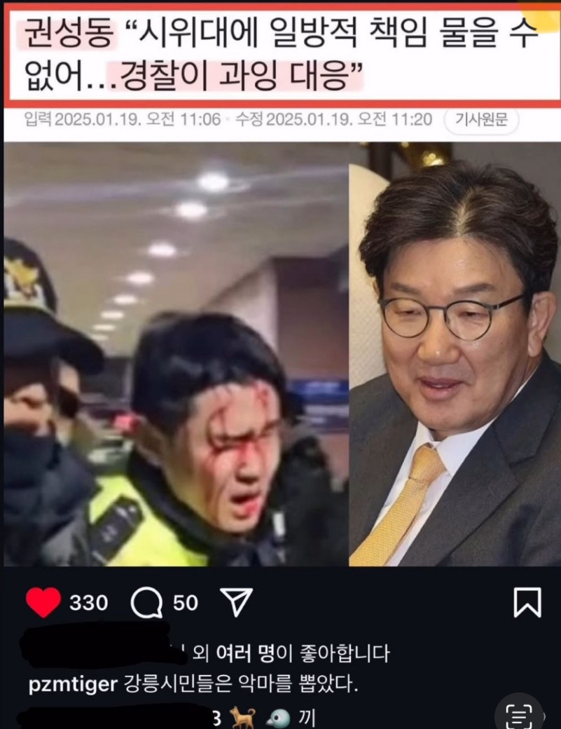 [칵.cxxx]권선동 왈: 경찰 과잉대응 작성자개빡쳐|작성시간25.01.19|조회수8,859 목록 댓글 28 글자크기 작게가 글자크기 크게가 출처: 여성시대 (개빡쳐)https://youtu.be/Wtef9pUbONA?si=qOeeDnD4FHKUvtmF 다음검색 현재 게시글 추가 기능 열기 북마크 공유하기 신고 센터로 신고 댓글 댓글 28 댓글쓰기 답글쓰기 댓글 리스트 작성자앱삐앱삐 | 작성시간 25.01.19 경찰은 동료가 맞아도 괜찮나봐^_^ 작성자나는야 저격수 | 작성시간 25.01.19 경찰이 피를 질질 흘렸다 폭도들 멀쩡하고 어디가 과잉인지 모르겠니? 작성자리영쥐 | 작성시간 25.01.20 경찰남들아뭐해 작성자에이스먹고싶 | 작성시간 25.01.20 진짜 블라인드 조용한거 개웃김 ㅋㅋㅋㅋㅋ 안웃김 ㅅㅂ 작성자윙바디 | 작성시간 25.01.20 조팔 염병하네 댓글 전체보기