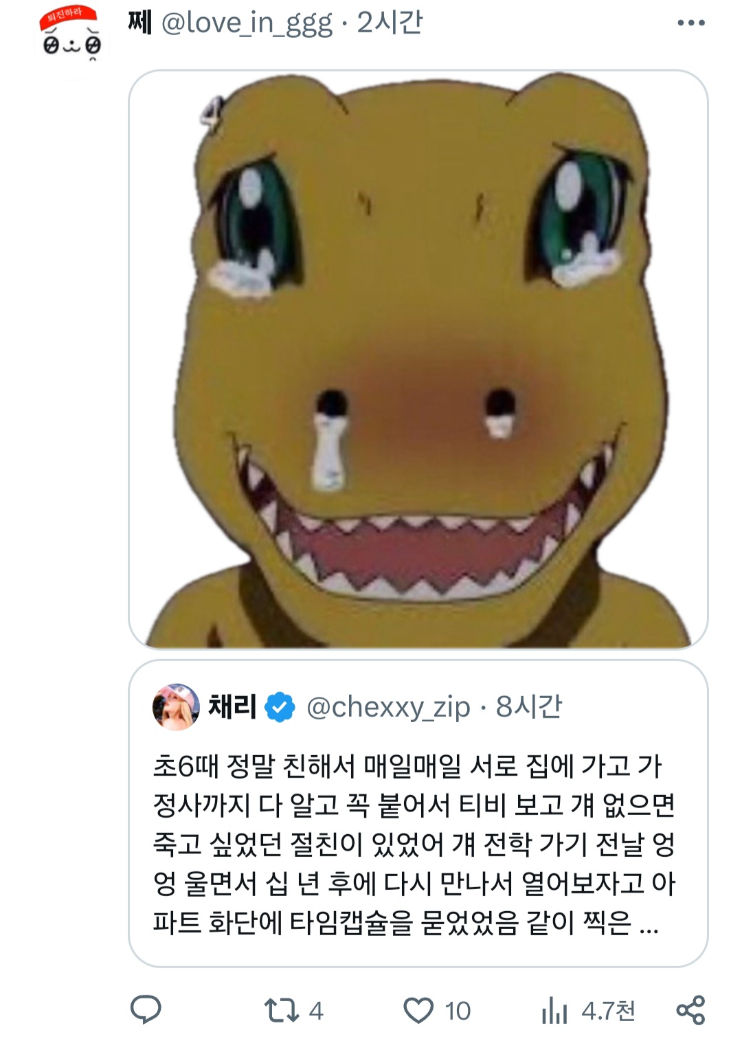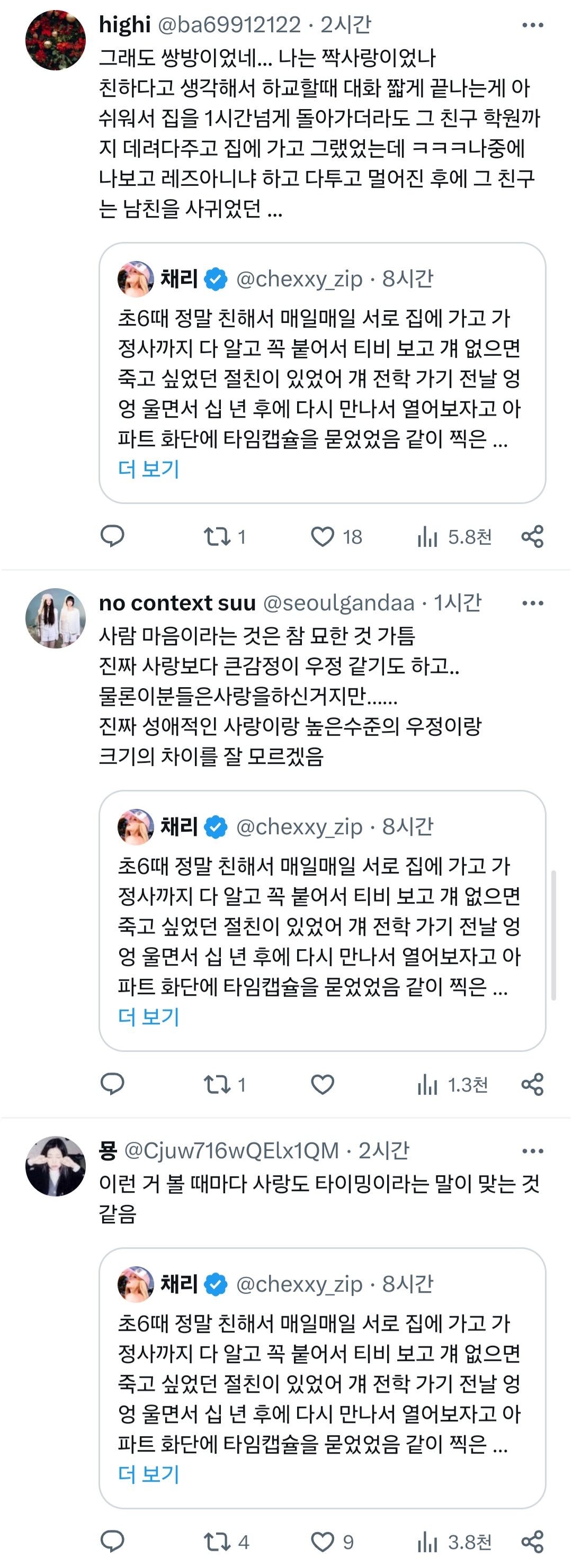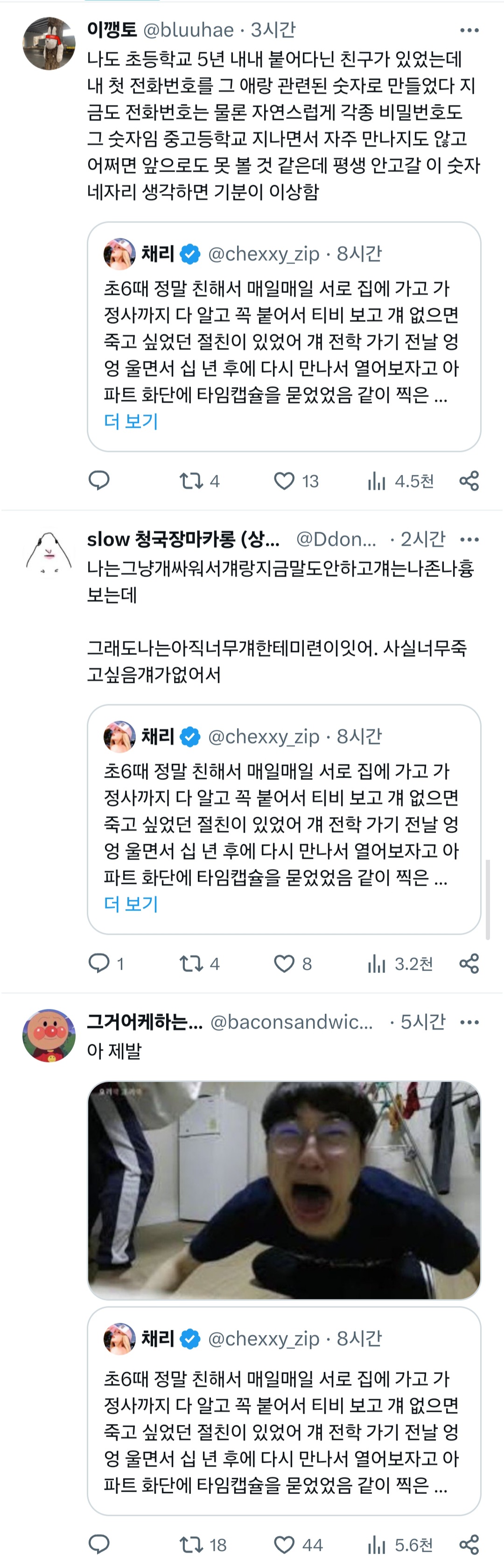 [흥미돋]초6때 정말 친해서 매일매일 서로 집에 가고 가정사까지 다 알고 꼭 붙어서 티비 보고 걔 없으면 죽고 싶었던 절친이 있었어.twt