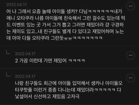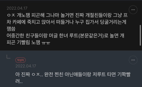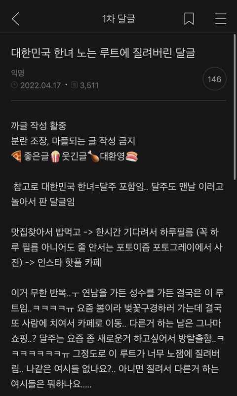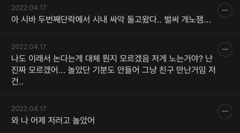 여시들 요즘 뭐하고 노는지 댓글 달아주면 좋겠는 달글