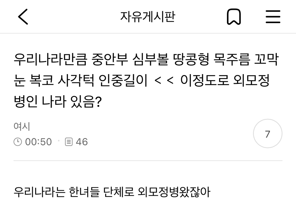 작성자행복운가득 작성시간 25.01.25 미국 남미 동남아... 솔직히 여자 외모 정병 없는 나라 있는지 모르겠음