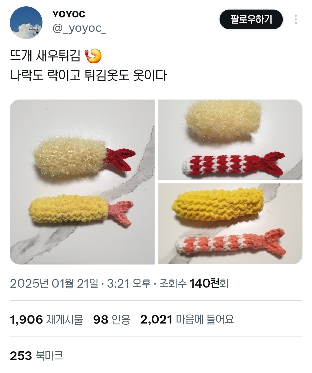 뜨개 새우튀김 도안을 만들어 봤어요 ʚ(ȉˬȉ⁎)ɞ˒˒