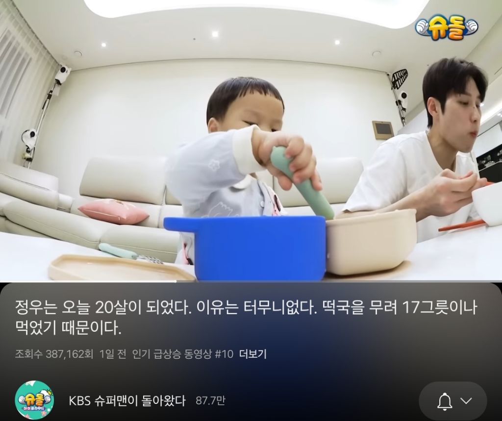 3살인데 떡국을 17그릇 먹어서 20살 됐다고 함