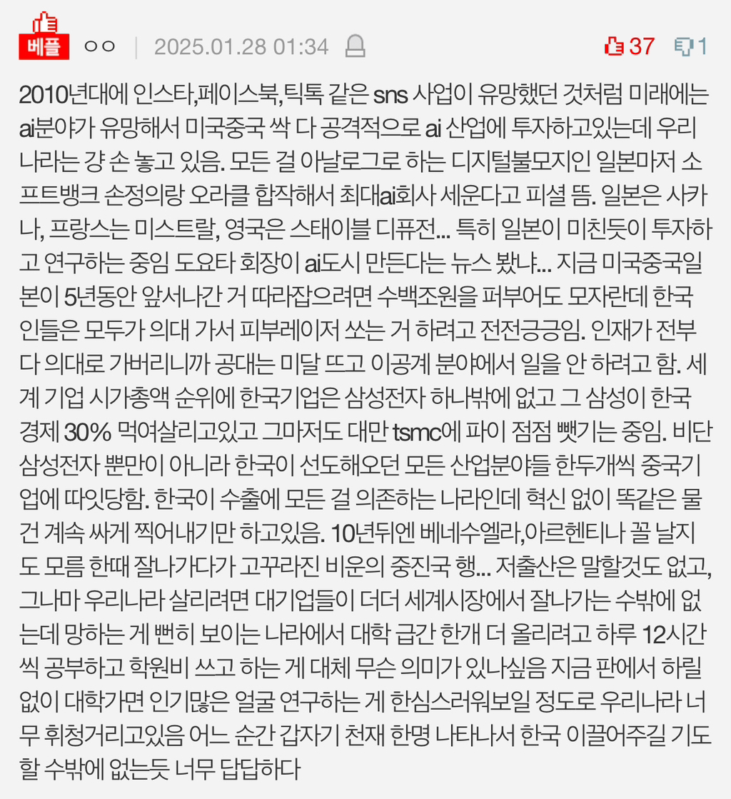 작성자키티의리본 작성시간 25.02.01 에휴 댓글 정독해야지