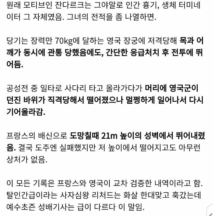 작성자세인트 엑소시스트 작성시간 25.01.31 신의 가호라기보다는 기사의 운명으로 태어났는데 여자라는 이유로 시대적인 편견에 갇혀버린거 아냐?