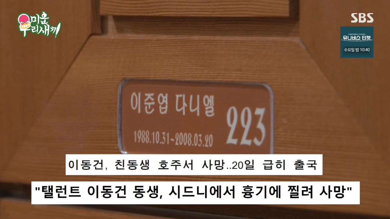 이동건의 남동생은 호주에서 유학 중 새벽 1시에 중국계 호주인들을 쳐다봤다는 이유로 시비가 붙었다가 길을 건너던 중 이들이 휘두른 흉기에 찔려 세상을 떠났음.