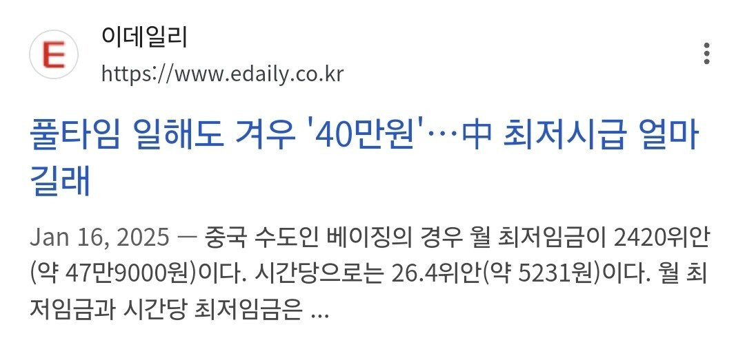 [ 베이징 최저임금 47만원 ]