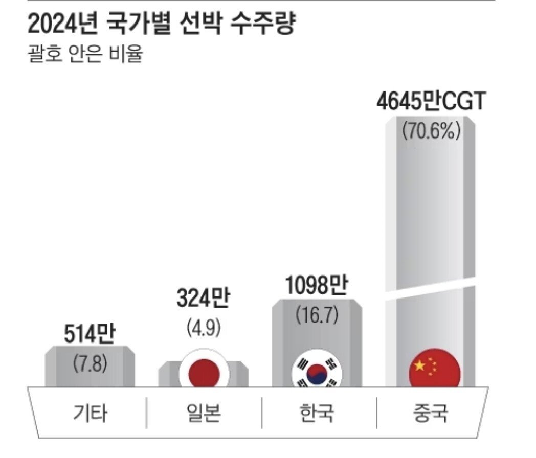 [ 중국 제외하고 사실상 유의미하게 대량 선박 건조 가능한 국가는 한국뿐으로, 전세계 200개 넘는 국가 합쳐도 한국만큼 생산량도 안 되는중 ]