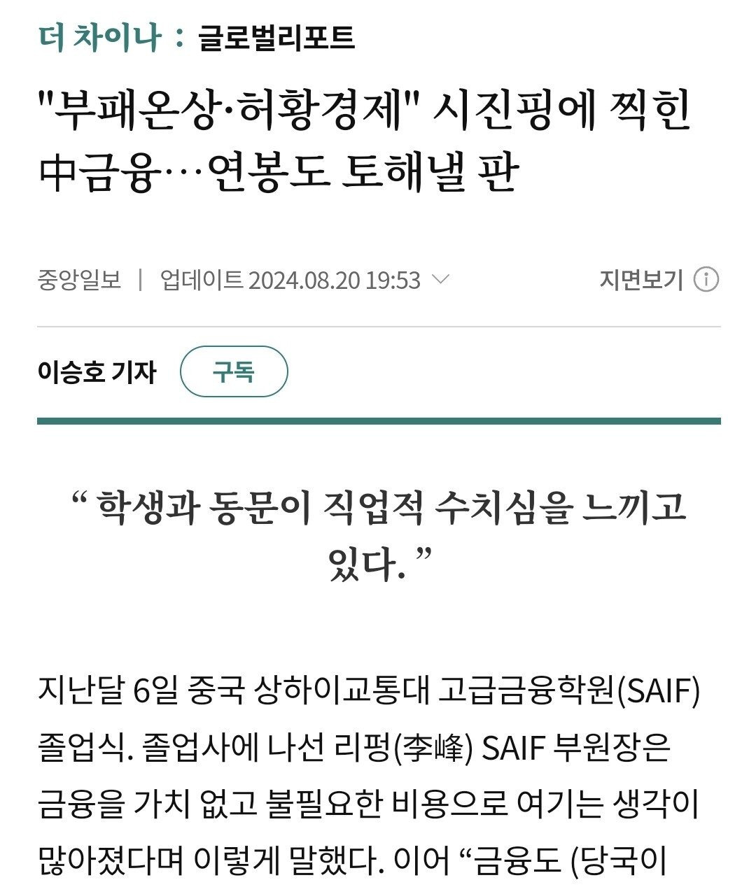최근 중국 IT 산업뿐만이 아니라 금융업에도