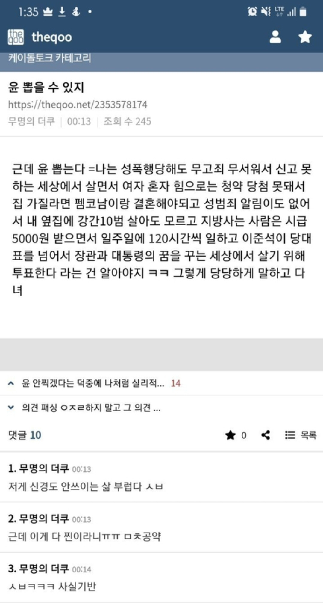 [스크랩] [흥미돋]햐참 대한민국 망치는 페미니즘 관련 짤 갖고싶어하는 메갈여시들 많네? 작성자백년초곤약롤젤리|작성시간25.02.04|조회수1,584 목록 댓글 7 글자크기 작게가 글자크기 크게가 출처: 여성시대 만약에시간을되돌릴수있다면 기꺼이 공유함가져가세요 다음검색 스크랩 원문 : *여성시대* 차분한 20대들의 알흠다운 공간 현재 게시글 추가 기능 열기 북마크 공유하기 신고 센터로 신고 댓글 댓글 7 댓글쓰기 답글쓰기 댓글 리스트 답댓글 작성자국교가샤머니즘 | 작성시간 25.02.04 ㅋㅋㅋㅋㅋㅋㅋㅋㅋㅋㅋㅋㅋㅋㅋㅋㅋ 작성자우혜미 | 작성시간 25.02.04 북맠! 고마워! 작성자이게나라냐이게 | 작성시간 25.02.05 다시 말해봐 씨발새끼야이 책 제목아는 사람ㅋㅋㅋㅋㅋ진짜 개웃기다 답댓글 작성자문집내 | 작성시간 25.02.05 정세랑의 옥상에서 만나요였나? 정세랑 책으로 알고있움!! 작성자춘식이는집순이 | 작성시간 25.02.05 나도 저 책 제목 궁금해 재밌을거같아ㅋㅋㅋ 댓글 전체보기