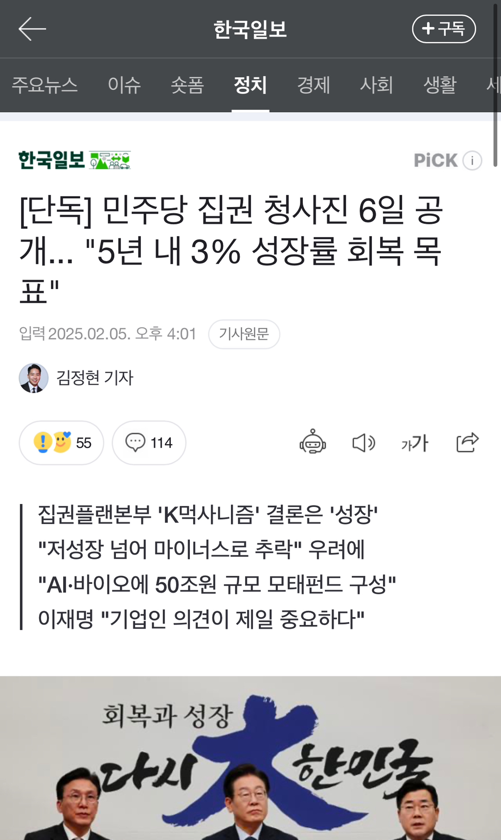 [μ¬μλ΄μ€λ°μ€ν¬]π¨π¨[λ¨λ ] λ―Όμ£ΌλΉ μ§κΆ μ²μ¬μ§ 6μΌ κ³΅κ°... "5λ λ΄ 3% μ±μ₯λ₯ ν볡 λͺ©ν"π¨π¨