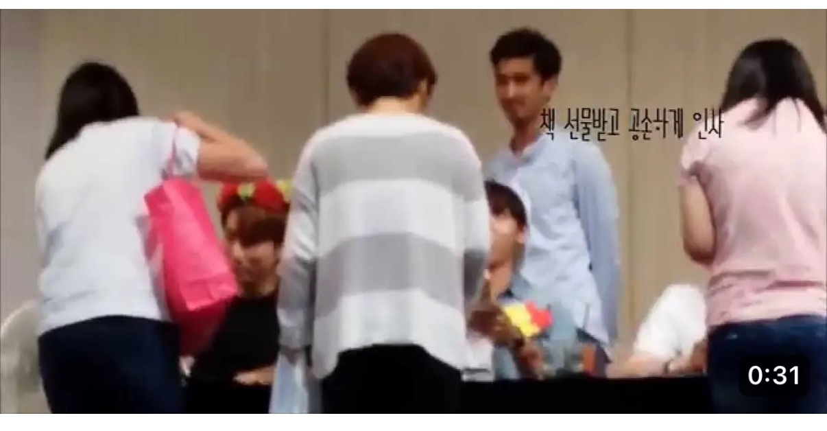원래 서서 받는건데 팬들은 연옌이랑 눈맞춤 하면서 받고싶어서 무릎꿇고 받음