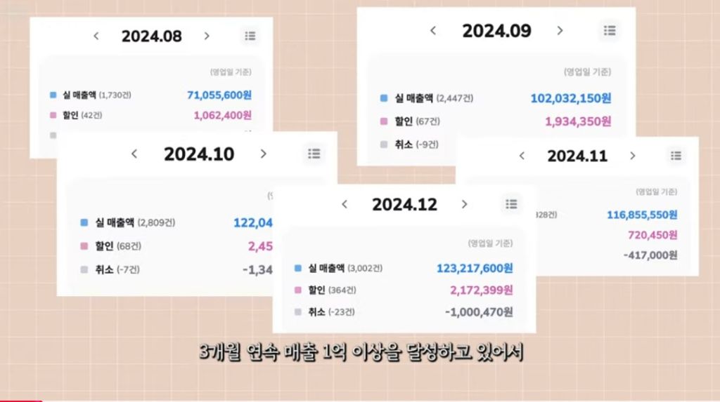 매출도 3개월 연속 월 1억 이상 찍어서 ㄷㄷ