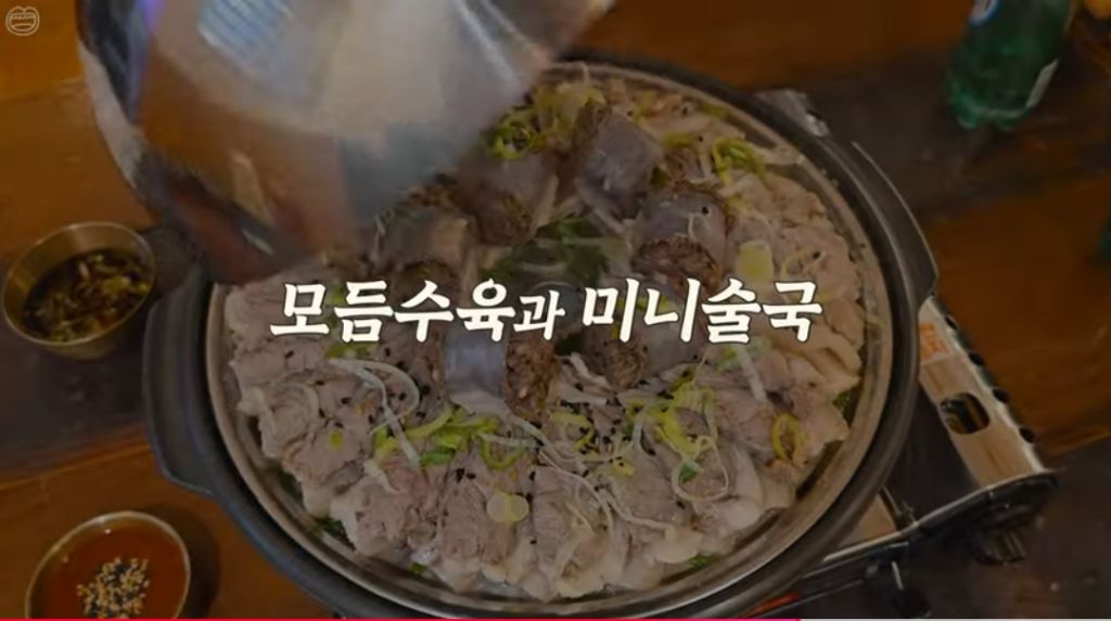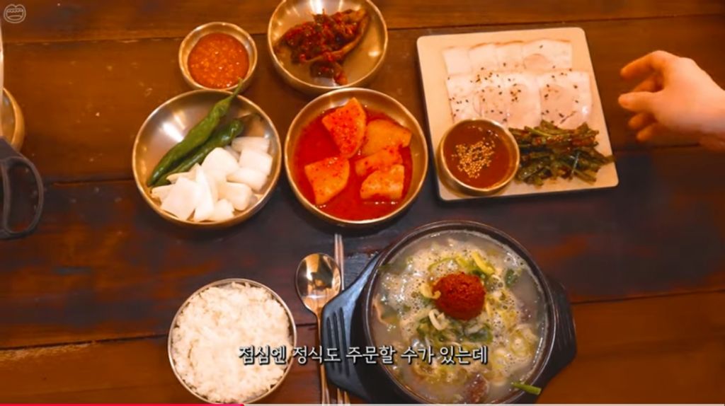점심에는 국밥이랑 냉수육이 같이 나가는 정식 구성인데