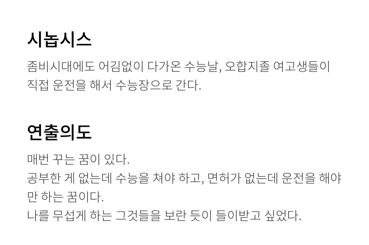 좀비가 나와서 쪼끔.. 징그럽고 깜짝 놀라기는 하는데