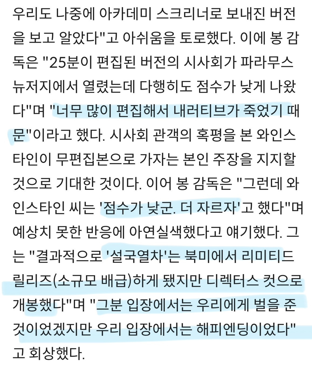 : 우린 봉감독 버전 좋았는데 이거 뭐임?