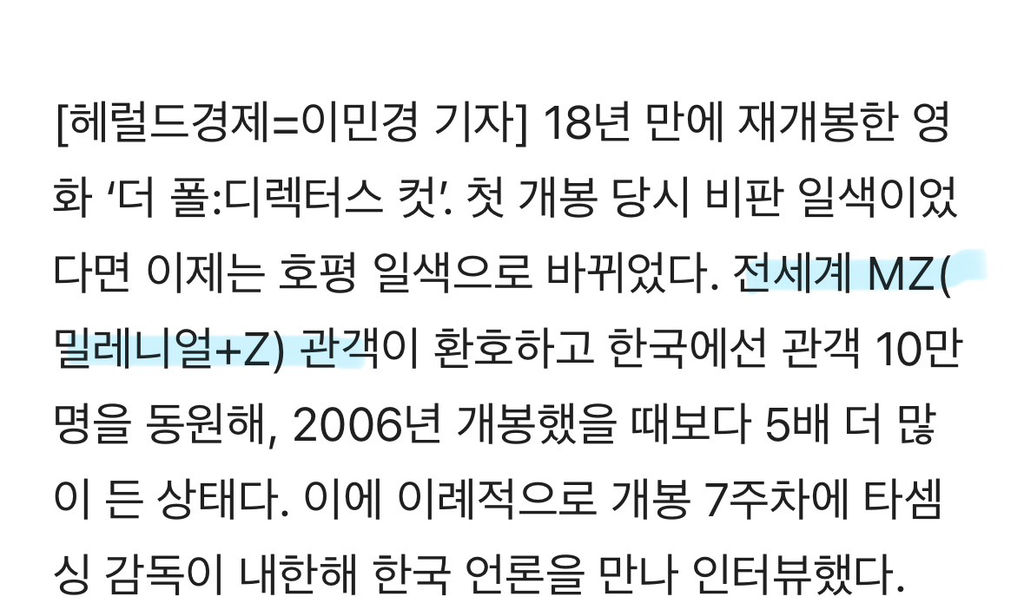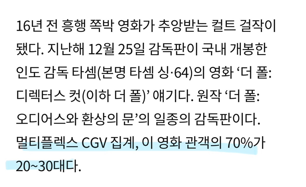 여러 기사에서 MZ세대, 2030 관객이 봐주고있다고 뭉뚱그려 말하지만 타셈은 꼭꼭 한국 여성 관객 샤라웃중