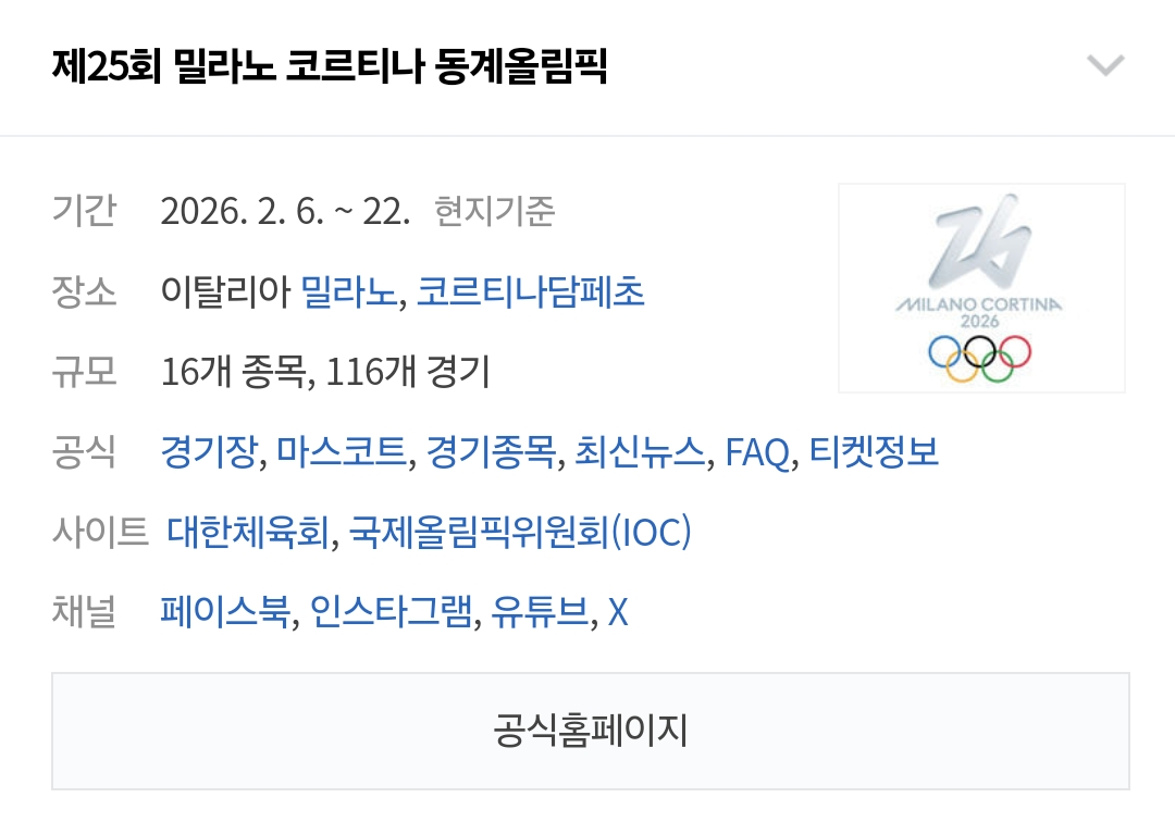 ❄️ 2026 밀라노 & 코르티나담페초 동계 올림픽