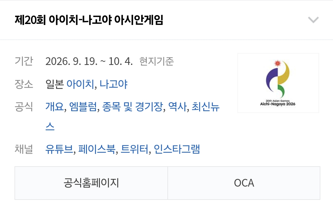 🏆 2026 아이치 & 나고야 하계 아시안게임