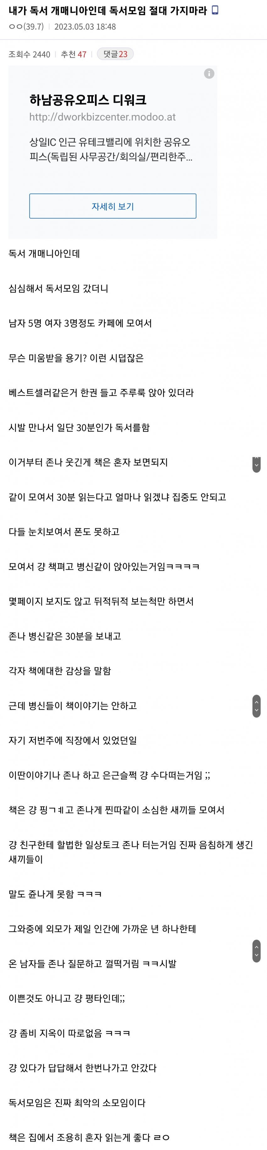독서모임 들어가서 모임 규칙이랑 다음 주에 만나서 얘기할 책과 주제는 뭔가요? 발제는 있나요? 물어봤어야지